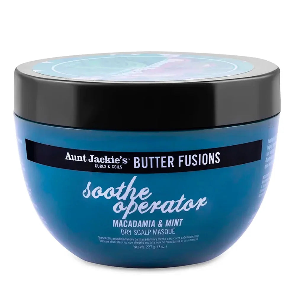 Aunt Jackie’s Soothe Operator Dry Scalp Conditioning Masque is an invigorating blend of mint and aloe is a penetrating, soothing therapy for dry scalp, while macadamia, jojoba and mongongo oils known to mega-hydrate and nourish both hair and scalp.