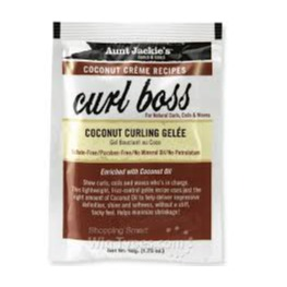 Good-bye frizz.... Hello shine & definition! Aunt Jackie's Curl Boss Coconut Curling Gelee is the perfect styling remedy to help achieve soft, bouncy, smooth, hydrated, radiant-looking curls, coils and weaves. Great for 1b-4c textures, wash-n-go styles, and any curl style in need of long lasting definition.