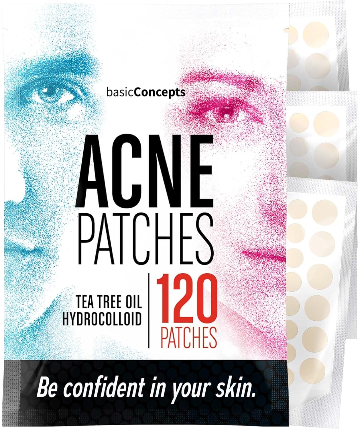 BASIC CONCEPTS Pimple Patches for Face (120 Pack), Hydrocolloid Patch with Tea Tree Oil - Pimple Patch Zit Patch and Pimple Stickers - Hydrocolloid Acne Patches for Face - Zit Patches -Blemish Patches