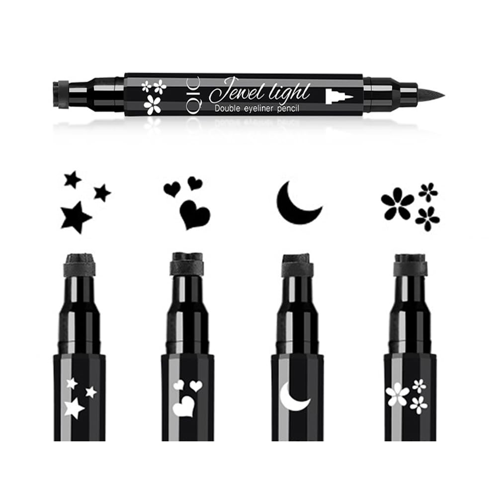💟 【Dual-ended Design】 Two-in-one waterproof, matte black liner featuring a liquid felt-tip brush on one end and a shape stamp on the other end.