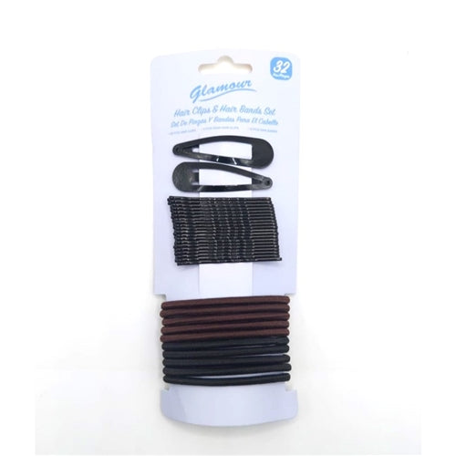 Glamour Hair Clips & Hair Bands Set, 32's Black & Brown