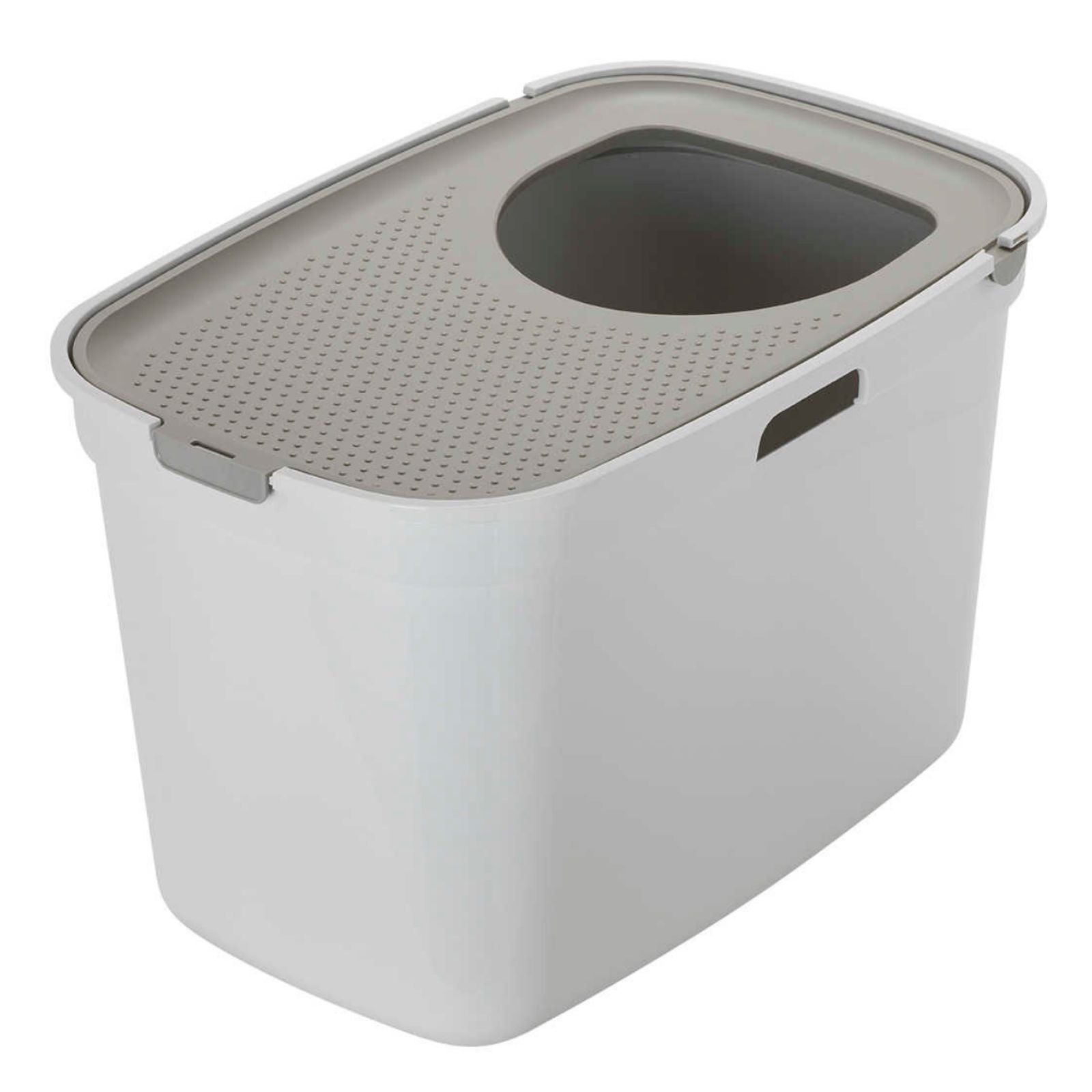 Top Entry Litter Box, Moderna Top Cat, Jumbo Size White/ Warm Grey