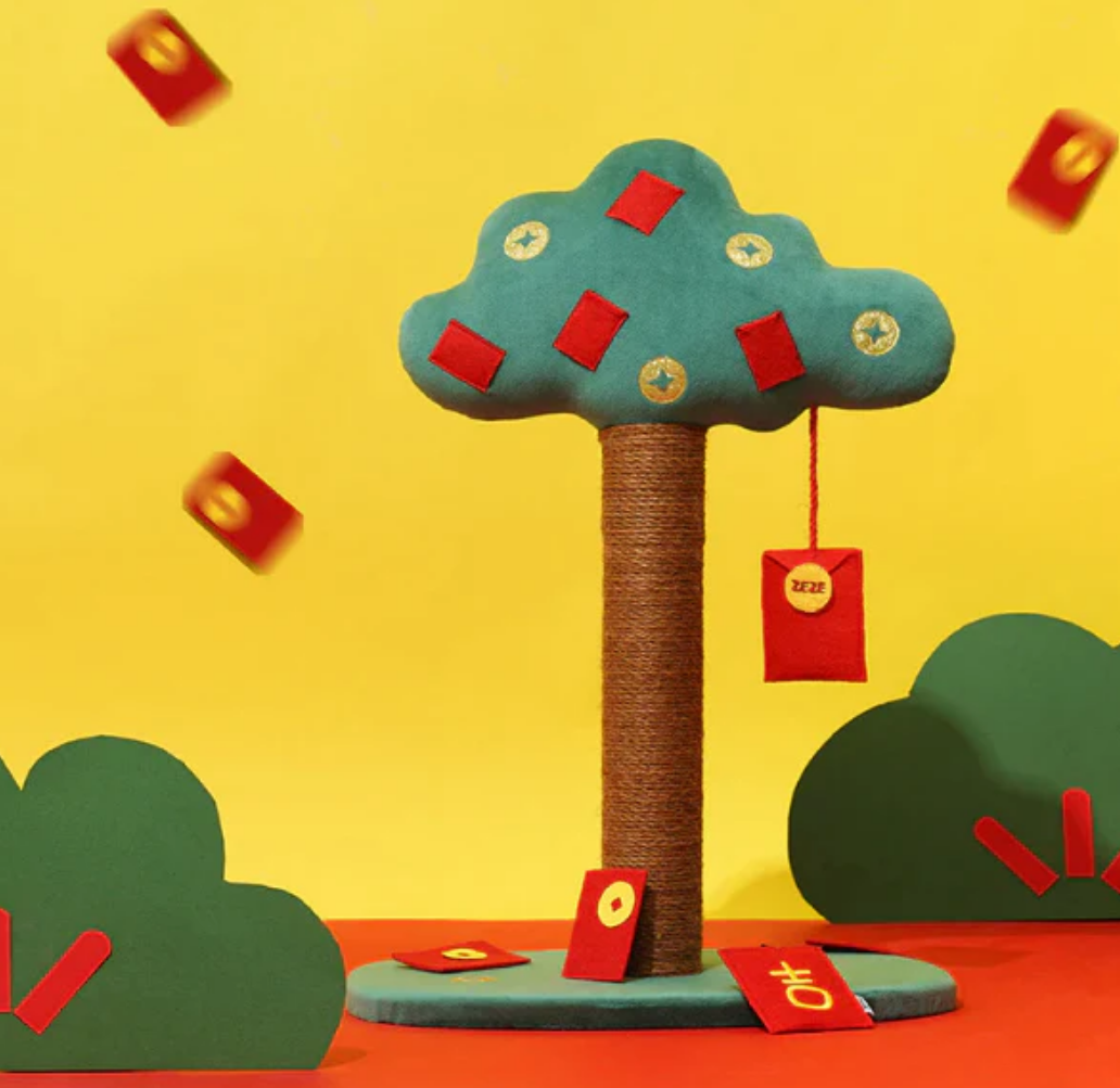 Happy New Year! zeze's Lunar New Year Limited Red Packet Tree Cat Scratching Post is a must-have for your cat and your home for the New Year! The unique design of the red packet tree is fun and vivid, and the hanging red packet contains catnip, cats' favorite, and it is made of natural jute rope, so cats can play and chew with confidence! With stable base and exquisite wrapping, the surface is made of high-quality crystal velvet fabric, thick and soft!